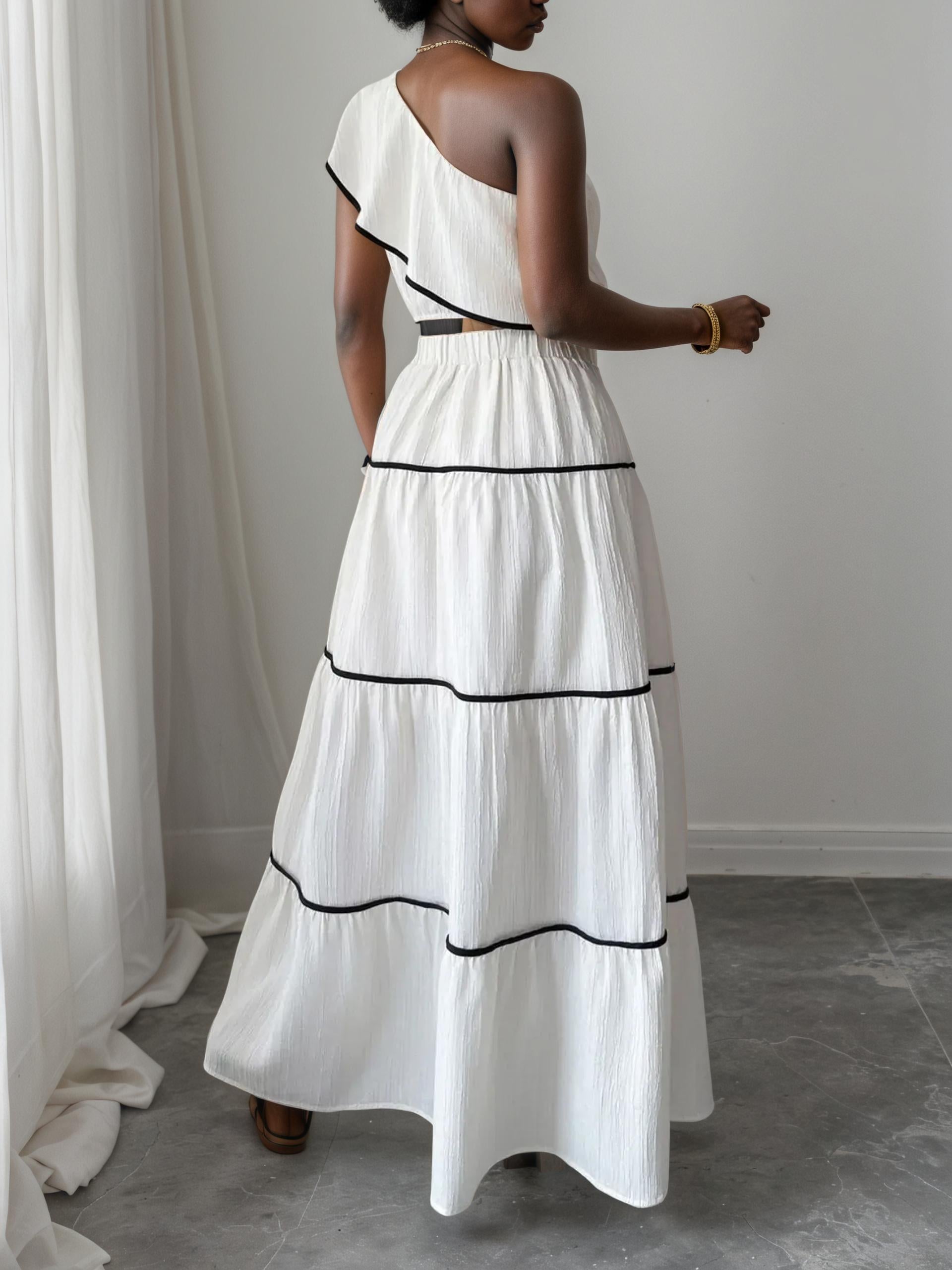 One-Shoulder Ruffle Top and Maxi Skirt Set