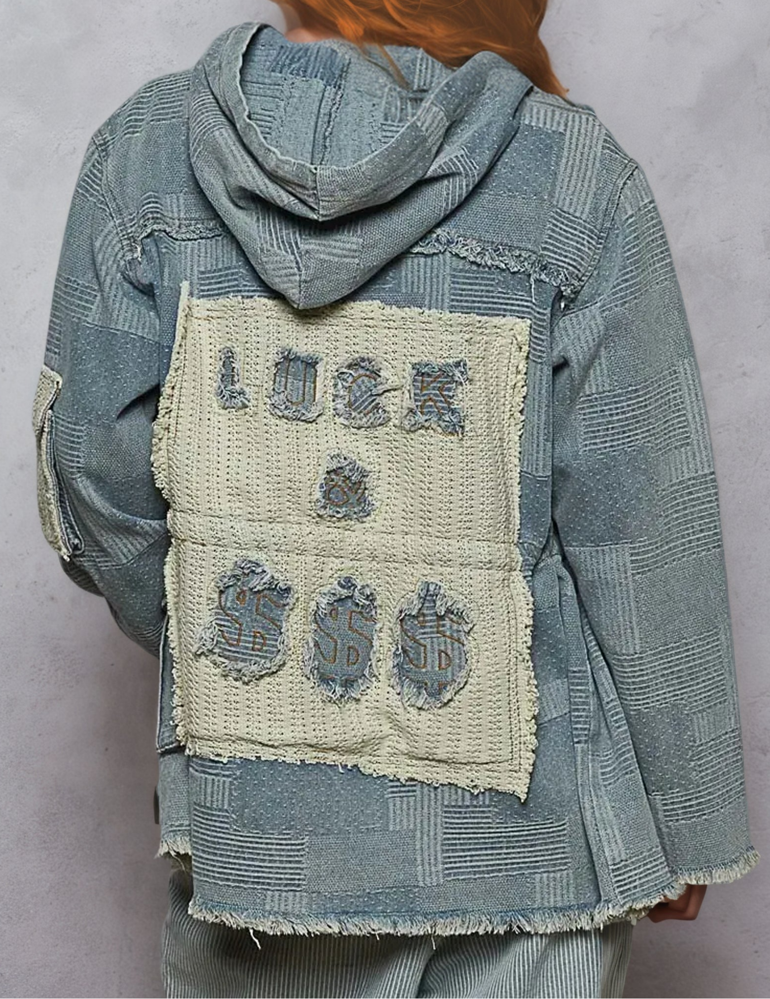 This vintage-inspired denim jacket features a unique patchwork design with distressed detailing that creates an effortlessly cool aesthetic. Crafted from premium cotton denim with a perfectly faded blue wash, this oversized jacket offers both comfort and style. Perfect for layering, this jacket combines classic denim construction with contemporary streetwear elements, making it ideal for casual everyday wear or as a statement piece for urban fashion enthusiasts.