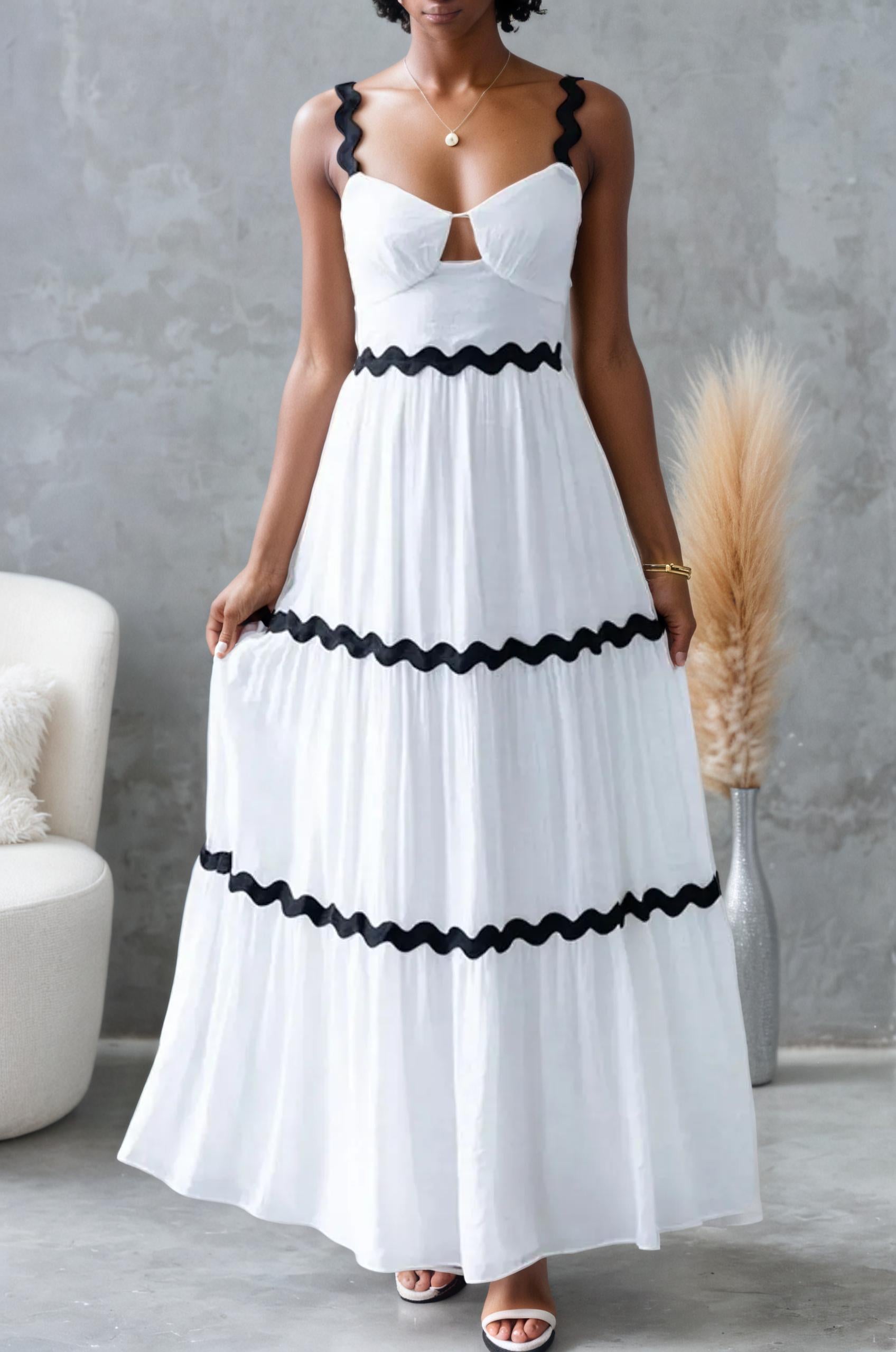 Scalloped Strap and Trim Maxi Dress